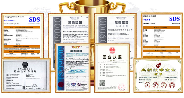 Xi’an Deli Biochemical Industry Co., Ltd. je high-tech podnik špecializujúci sa na výskum a vývoj, výroba a predaj cyklodextrínov a ich derivátov. Dodávame farmaceutické pomocné látky zákazníkom po celom svete so stabilnou kvalitou a spoľahlivým servisom.