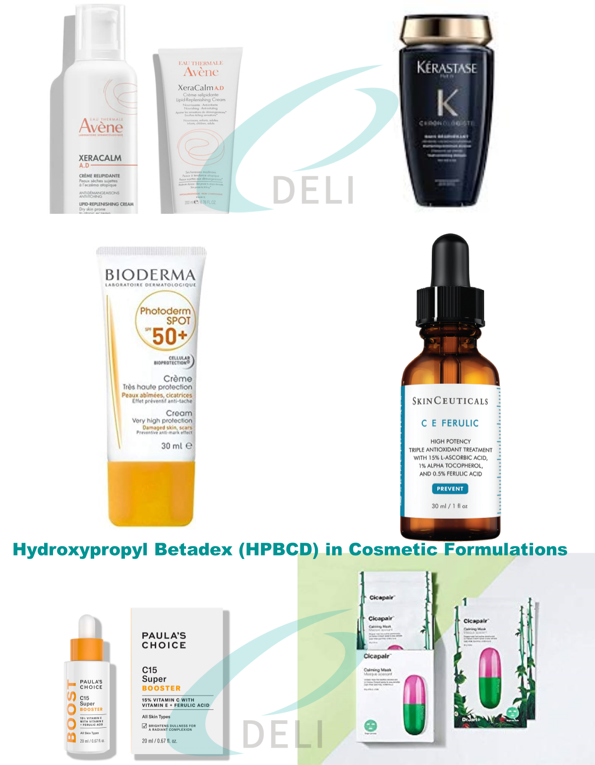 V súčasnosti mnoho značiek starostlivosti o kozmetické a pokožku verejne nezverejňuje podrobne špecifické zložky (napr. Hydroxypropyl betacyclodextrín, HPBCD) použité vo svojich formuláciách, čo sťažuje definitívne uvedenie všetkých špecifických produktov, ktoré používajú HPBCD. Na základe verejne dostupnej literatúry, patentov a priemyselných zdrojov sú však niektoré jasne alebo veľmi pravdepodobné kategórie a príklady kozmetických a produktov starostlivosti o pleť, ktoré používajú HPBCD: