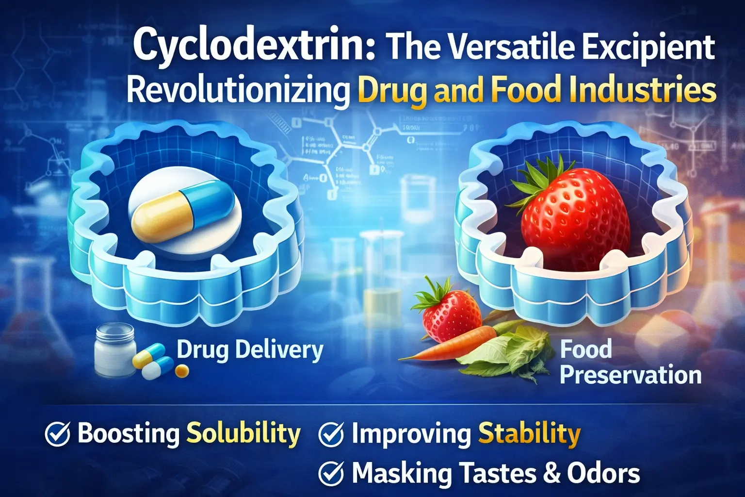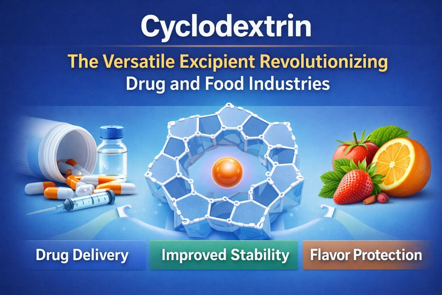 Objav cyklodextrínu je jedným z najdôležitejších krokov vpred v histórii potravín a medicíny. Tento prirodzene sa vyskytujúci cyklický oligosacharid zmenil spôsob, akým dodávame lieky, udržiavame potraviny čerstvé a používame množstvo iných chemikálií v priemysle. Produkt vytvára inklúzne komplexy, ktoré riešia dôležité problémy v mnohých oblastiach vďaka svojej výraznej molekulárnej štruktúre, ktorá má hydrofóbnu vnútornú dutinu a hydrofilný vonkajší povrch. Tento flexibilný excipient mení vedu o formuláciách a výrobné procesy po celom svete. Dokáže všetko od zlepšenia vstrebávania liekov až po skrytie zlých chutí v liekoch.