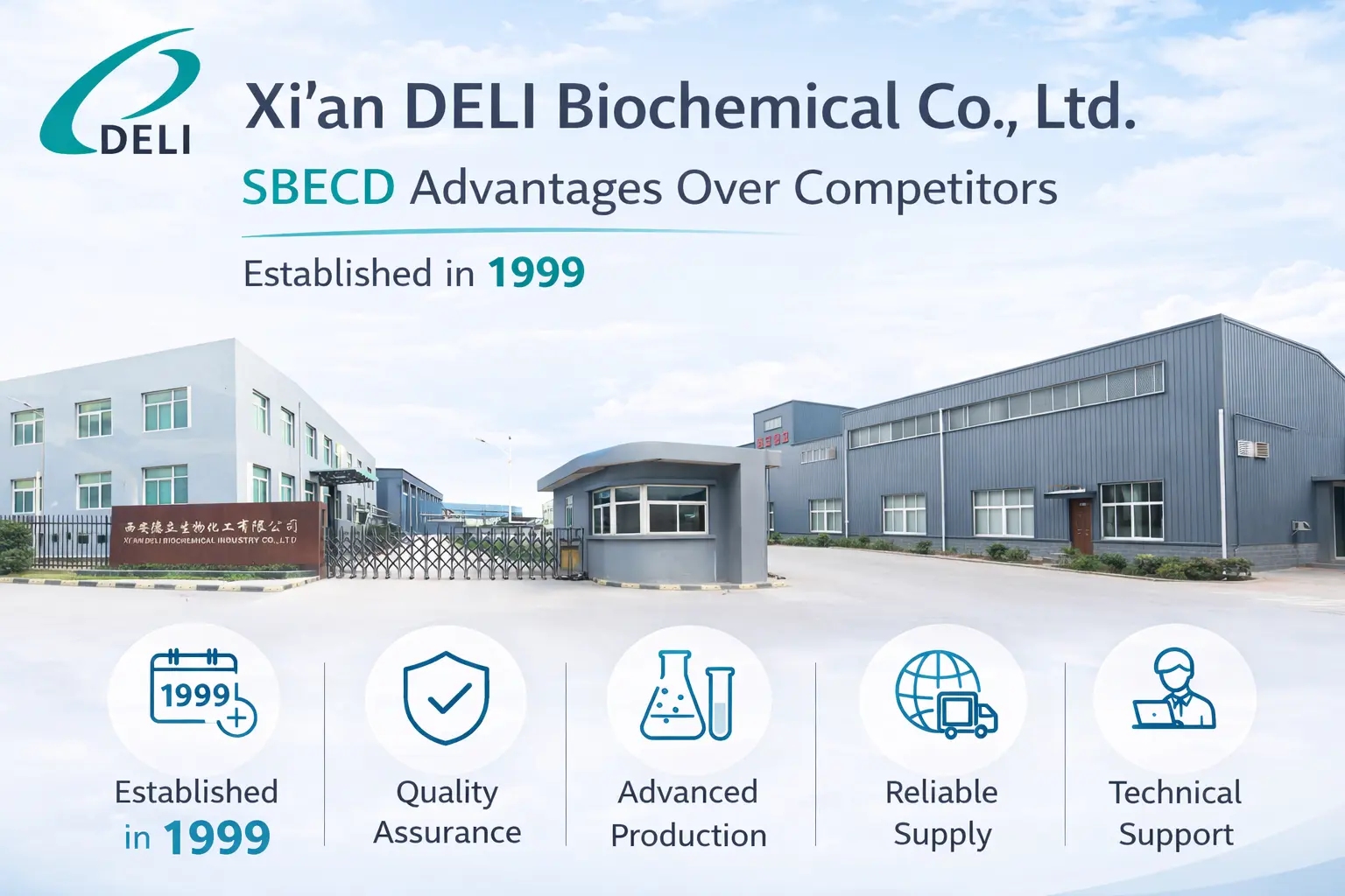 DELI Biochemical je jednou z najväčších spoločností, ktorá vyrába Betadex Sulfobutyl Ether Sodium. Vyrábajú injekčné zložky, ktoré spĺňajú najprísnejšie medicínske štandardy. Sme najlepším partnerom pre vývoj nových liekov, pretože nám záleží na kvalite, spoľahlivosti a spokojnosti zákazníkov. Výhodu DELI môžete získať prostredníctvom našej úplnej technickej pomoci a zaručenej spoľahlivosti dodávok. Kontaktujte nás na xadl@xadl.com, aby sme prediskutovali vaše špecifické potreby zloženia.